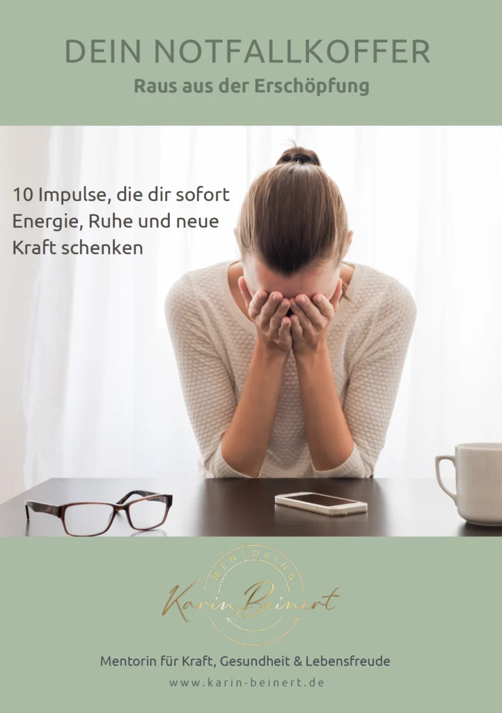 Dein kostenloses Workbook „Dein Notfallkoffer raus aus der Erschöpfung“! wartet auf dich. Einfach eintragen und per E-Mail als PDF erhalten.